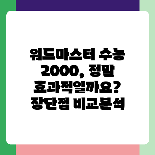 워드마스터 수능 2000, 수능 영어 단어 암기의 필수 교재라고 하는데 정말 그럴까요? 많은 학생들이 수능 영어 고득점을 위해 워드마스터를 선택하지만, 단순히 책만 가지고 있는 것으로는 부족하다는 것을 알고 계신가요? 이 글에서는 워드마스터 수능 2000을 효과적으로 활용하는 방법을 알려드리겠습니다. 단어 암기의 어려움을 극복하고 수능 영어 마스터에 한 발짝 더 다가가는 여정을 함께 시작해 보세요.