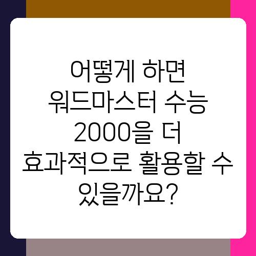 어떻게 하면 워드마스터 수능 2000을 더 효과적으로 활용할 수 있을까요?